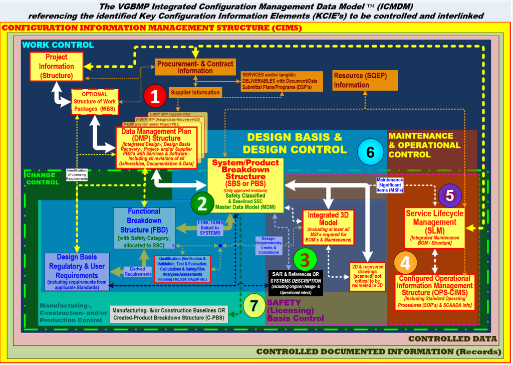 We also keep close to the iICLM Integrated Configuration Management Data Model (aka the VGBMP Data Model) to ensure or improve traceability and access to the right information at the right time. VGBMP Data Model guides the linking of all elements of information that should be under control and accessible from a single point of entry. ilCLM uses two clear CM processes simultaneously within the Framework of the VGBMP model to create complete traceability and an audit trail per information